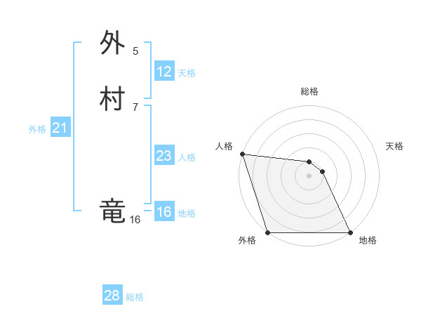 外村 竜さんの総格は28画の1点!