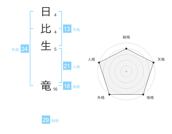 日比生 竜さんの総格は29画の4点!