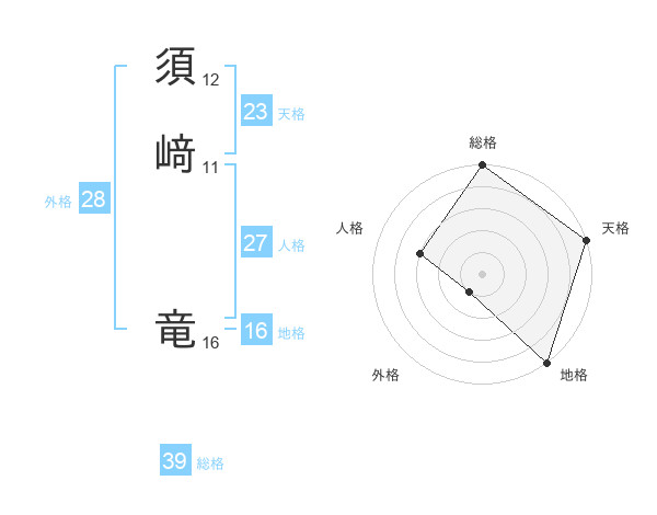 須﨑 竜さんを姓名の画数から五運を鑑定