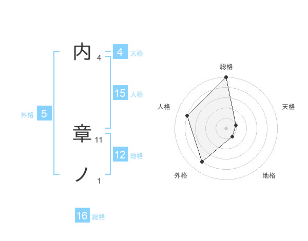 内 章ノさんの総格は16画の5点!
