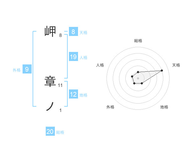 岬 章ノさんの総格は20画の1点!