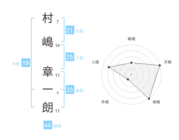 村嶋 章一朗さんの天格は21画の5点!