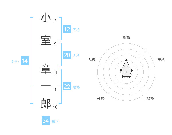 小室 章一郎さんの総格は34画の2点!