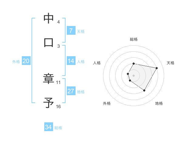 中口 章予さんの総格は34画の2点!