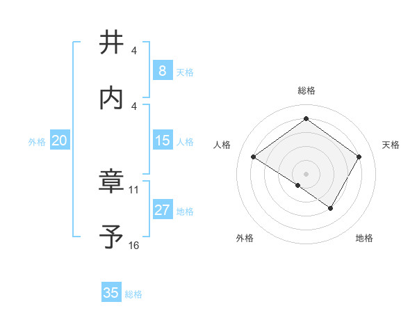 井内 章予さんの総格は35画の4点!