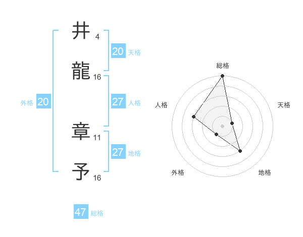井龍 章予さんの総格は47画の5点!