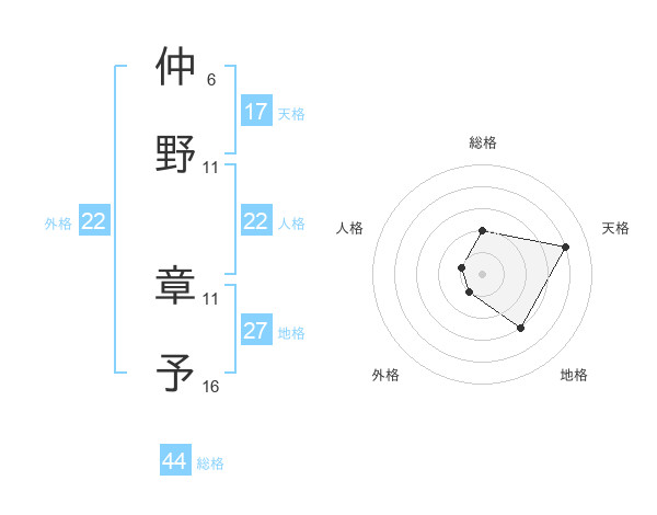 仲野 章予さんの総格は44画の2点