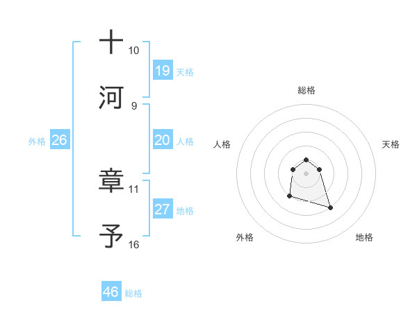 十河 章予さんの総格は46画の1点!