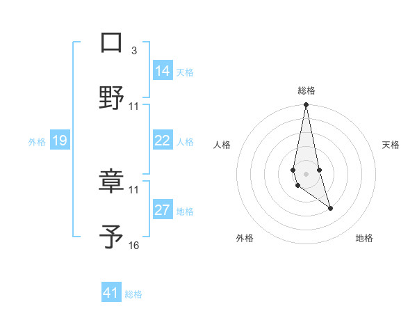 口野 章予さんの総格は41画の5点!