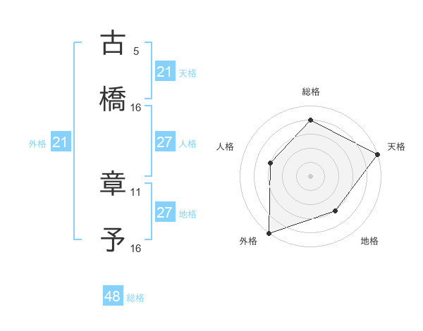 古橋 章予さんの天格は21画の5点!