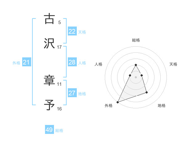 古沢 章予さんの総格は49画の2点!