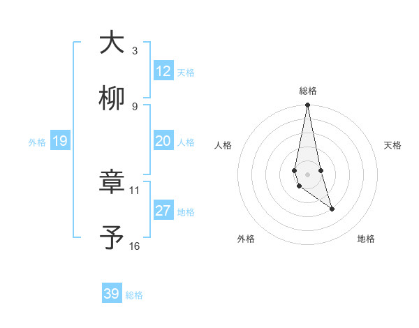 大柳 章予さんの総格は39画の5点!