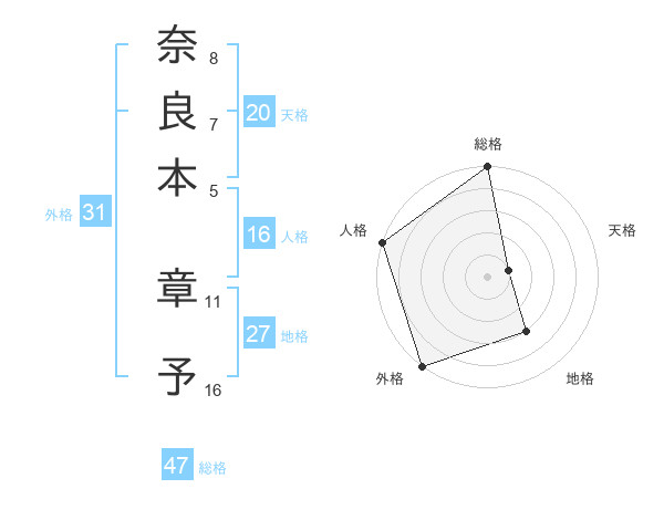 奈良本 章予さんを姓名の画数から五運を鑑定