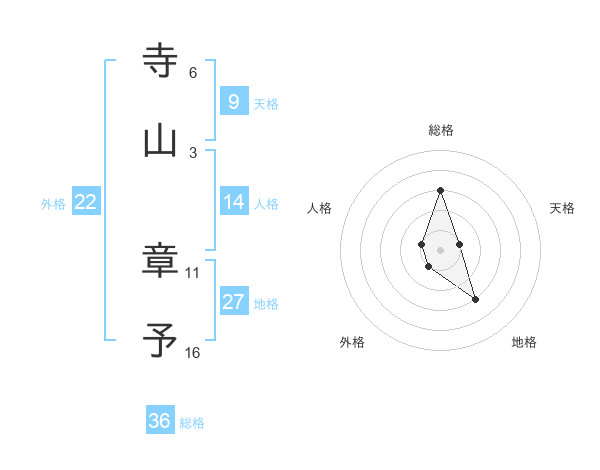 寺山 章予さんの総格は36画の3点!