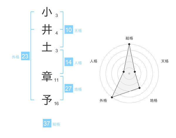 小井土 章予さんの総格は37画の5点!