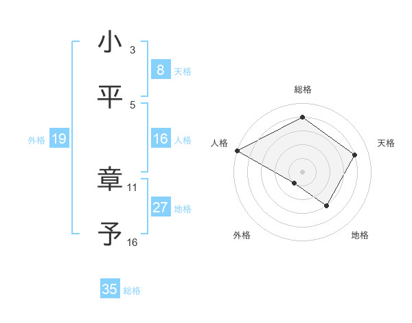 小平 章予さんを姓名の画数から五運を鑑定