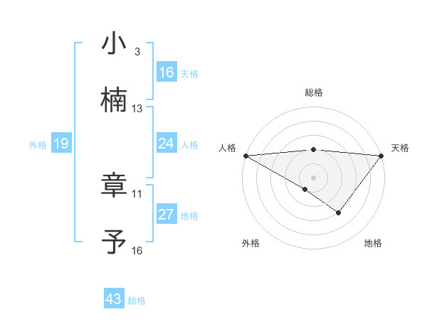 小楠 章予さんの外格は19画の1点!
