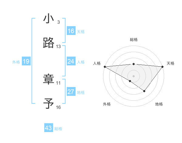 小路 章予さんの総格は43画の2点!