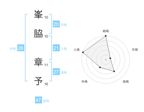 峯脇 章予さんの総格は47画の5点!