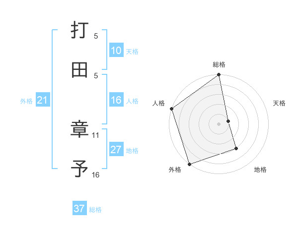 打田 章予さんの総格は37画の5点!