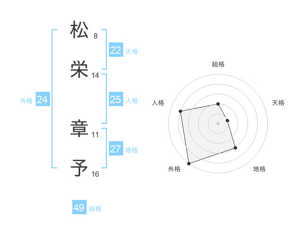 松栄 章予さんの総格は49画の2点!