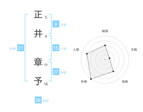 正井 章予さんの外格は21画の5点!
