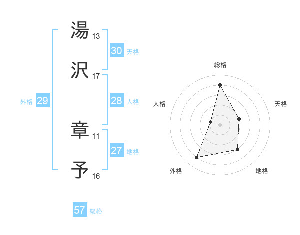 湯沢 章予さんの総格は57画の4点!