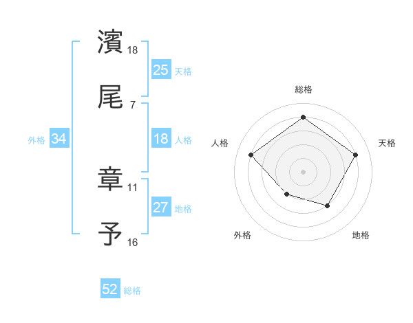 濱尾 章予さんの総格は52画の4点!