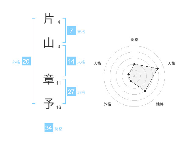片山 章予さんの総格は34画の2点!