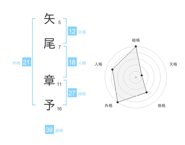 矢尾 章予さんの総格は39画の5点!