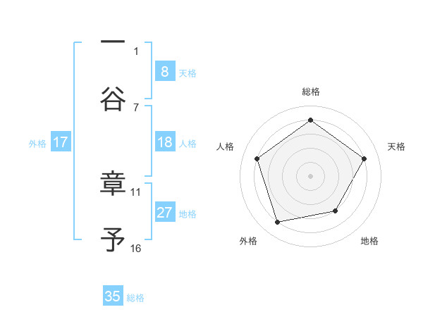 一谷 章予さんの総格は35画の4点!