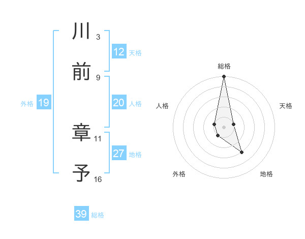 川前 章予さんの総格は39画の5点!