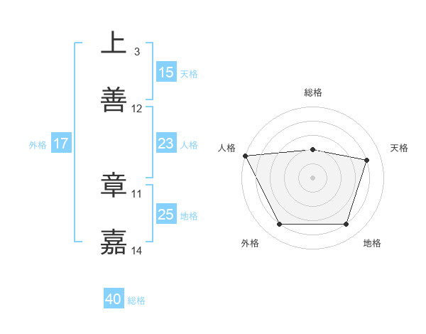 上善 章嘉さんを姓名の画数から五運を鑑定