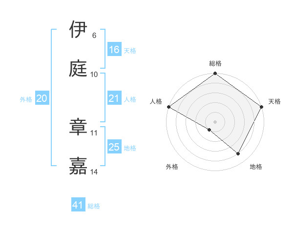 伊庭 章嘉さんを姓名の画数から五運を鑑定