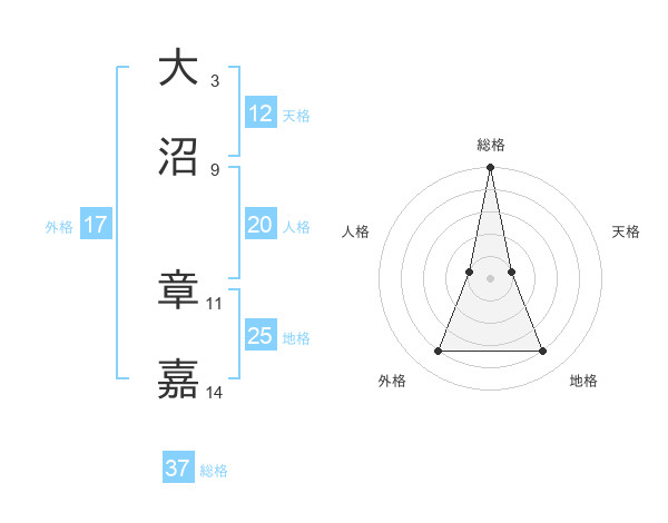 大沼 章嘉さんを姓名の画数から五運を鑑定