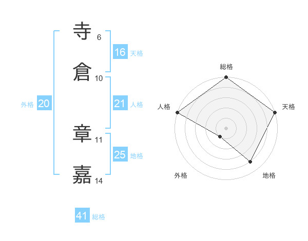 寺倉 章嘉さんの地格は25画の4点!