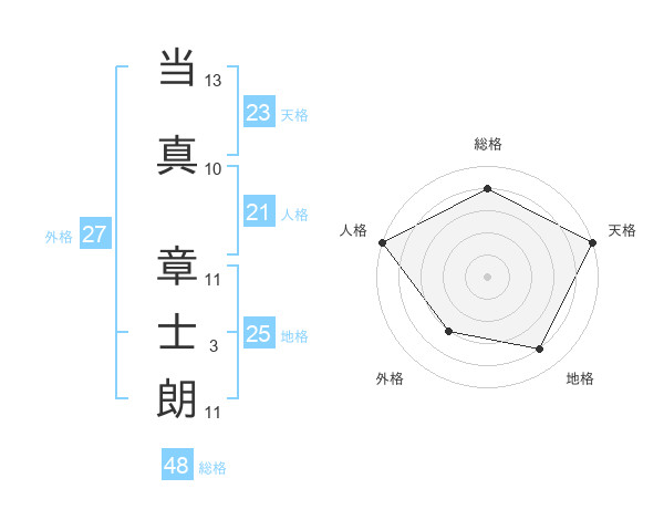 当真 章士朗さんを姓名の画数から五運を鑑定