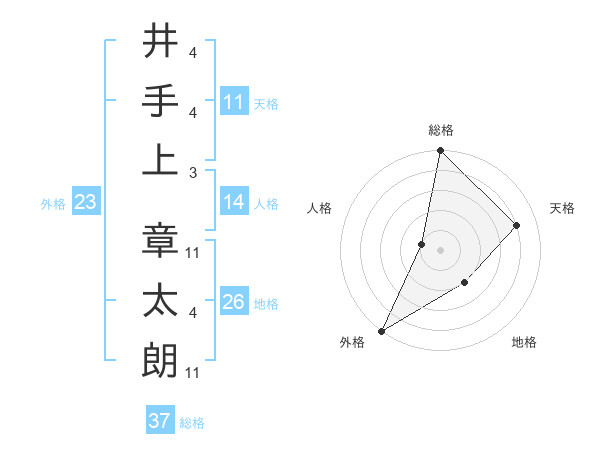 井手上 章太朗さんを姓名の画数から五運を鑑定