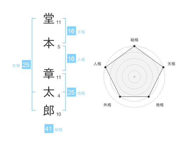 堂本 章太郎さんの総格は41画の5点!