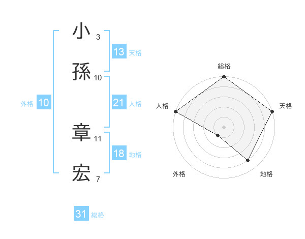 小孫 章宏さんの総格は31画の5点!