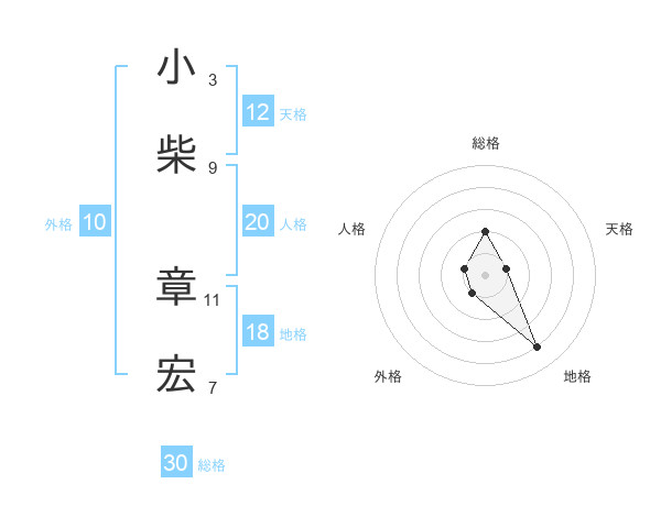 小柴 章宏さんの総格は30画の2点!
