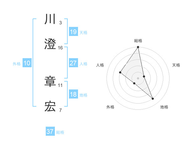川澄 章宏さんの総格は37画の5点!