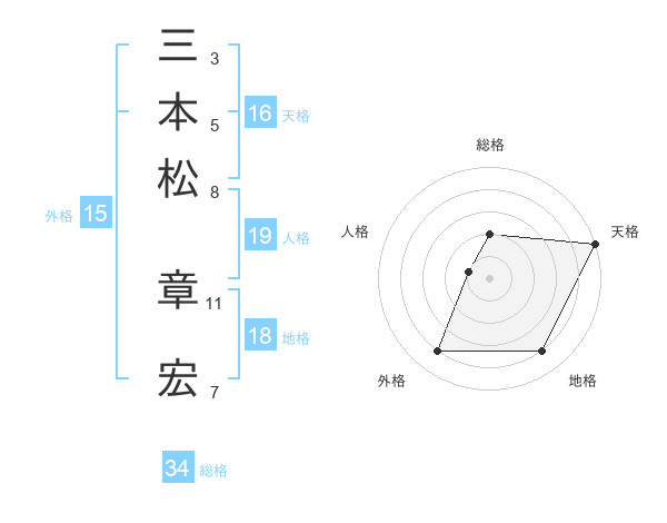 三本松 章宏さんを姓名の画数から五運を鑑定