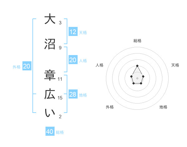 大沼 章広いさんを姓名の画数から五運を鑑定