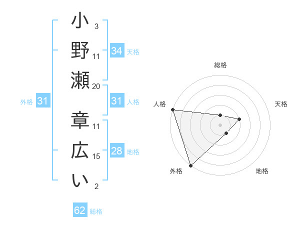 小野瀬 章広いさんを姓名の画数から五運を鑑定