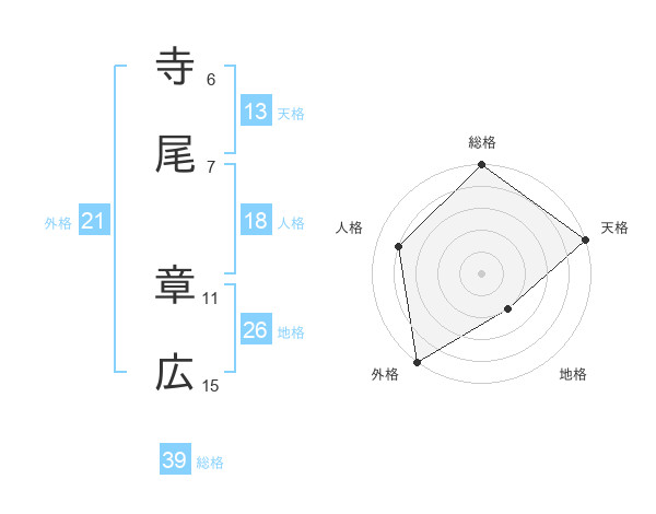 寺尾 章広さんの総格は39画の5点