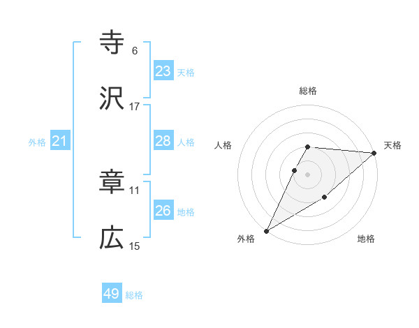 寺沢 章広さんの天格は23画の5点!