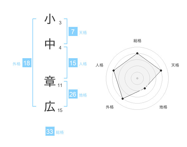 小中 章広さんの総格は33画の4点