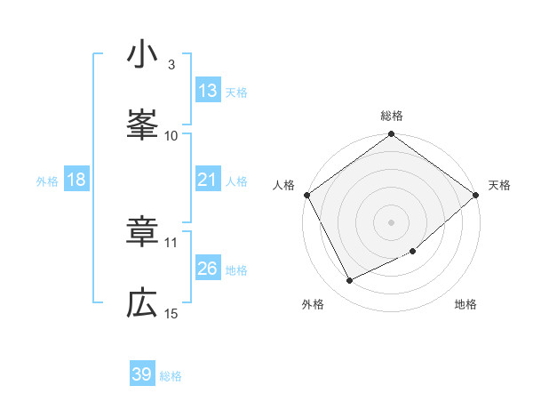 小峯 章広さんの総格は39画の5点!