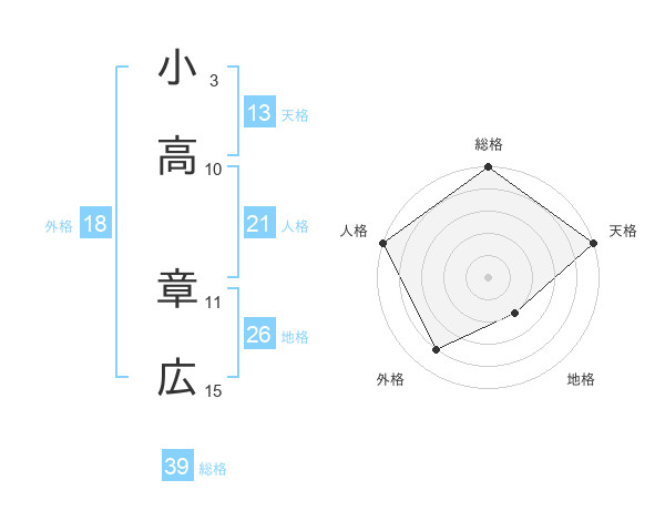 小高 章広さんの総格は39画の5点!